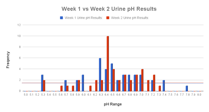This chart shows a comparison of our week 1 to week 2 urine pH measurements: