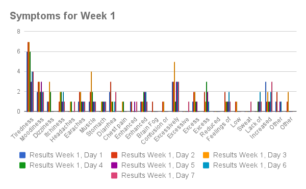 Now take a look at how our symptoms decreased over the first 7 day period of our cleanse: