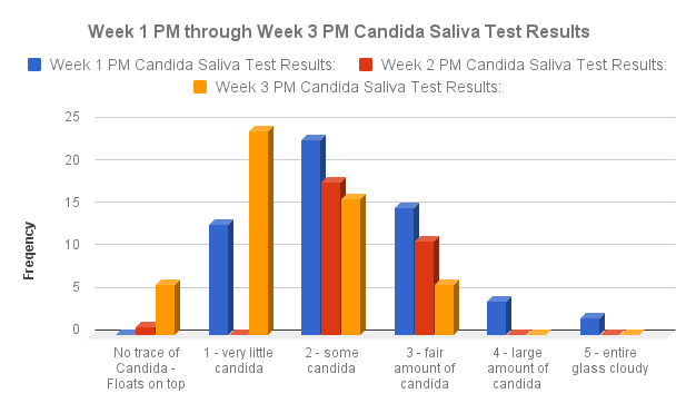 Let's take a look at our results comparing week 1 through week 3 for our candida saliva test!