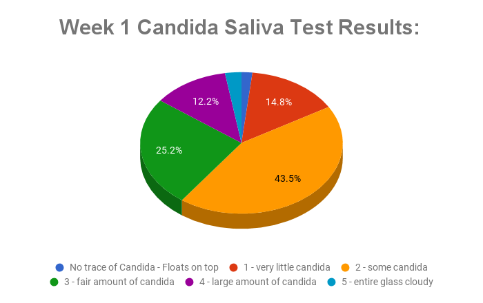 In week 1, we saw only 1.7% of our community test for "No Trace of candida", while the "entire glass cloudy" was 2.6% of the total.