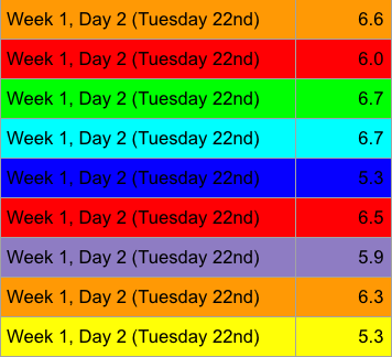 We began measuring the pH of our urine in the morning and night on the second day of our protocol. These are individuals' results from that first day of measurement:
