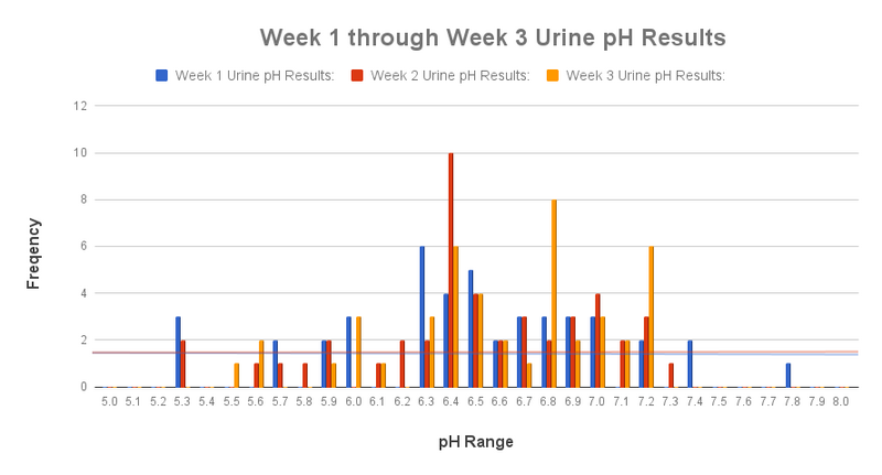 The low-ish pHs surprised many of us, especially those with very healthy diets. It was a wonderful learning experience about how our bodies work and allowed us to take a serious look at our diet and how it has a direct, observable impact on pH.